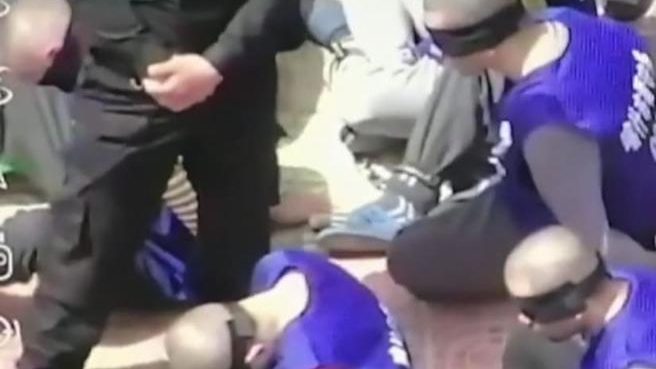 CCTV camera image probably depicting Uyghur Muslims in a re-education camp (photo by Corriere Della Sera)