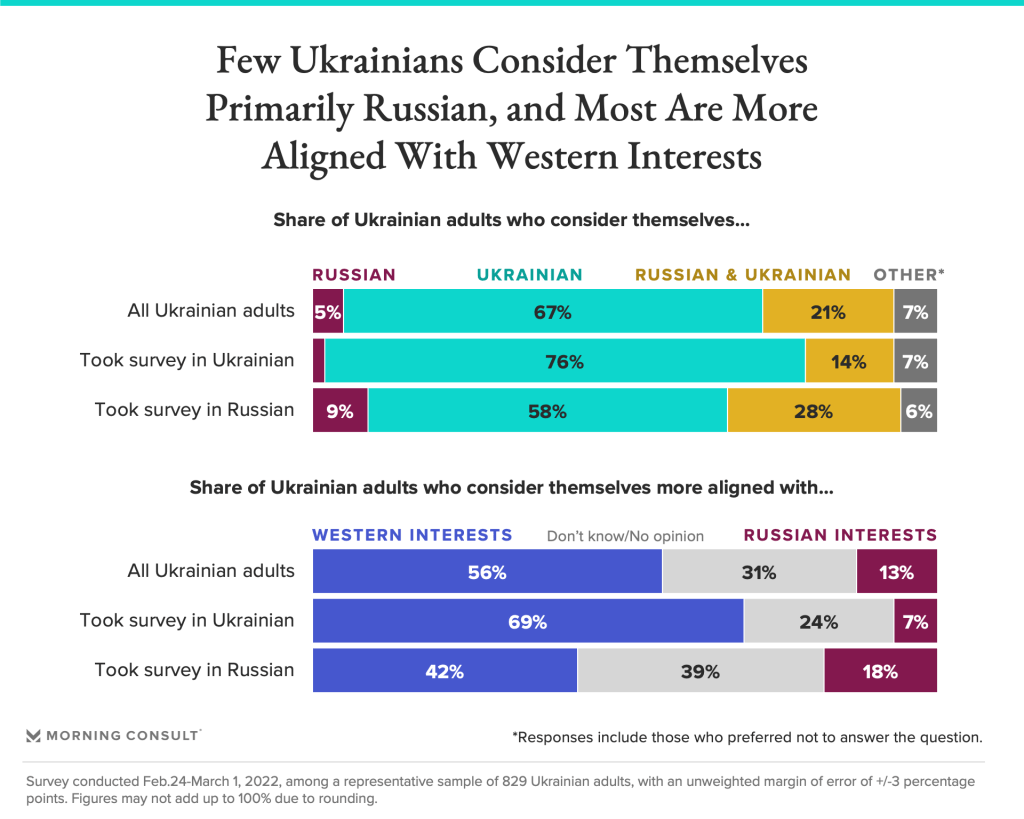Survey showing how Ukrainian do not recognize themselves as Russian and align their interests with the Western ones (survey by Morning Consult)