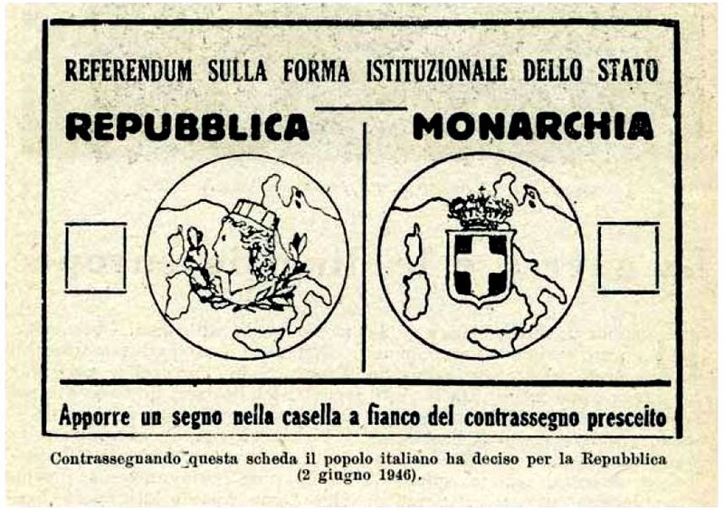 Voting paper of the 1946 republic-monarchy Italian referendum (photo by Wikipedia)